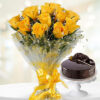 Bouquet of 10 Yellow Gerberas in nice wrapping along with 1/2 Kg Chocolate Cake
