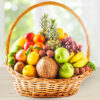 A basket of 5 Kg mixed fruits with foliage.