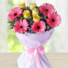 Arrangement of 24 Pink Roses with greens and fillers in a Basket (Images provided on the website are for reference purposes)
